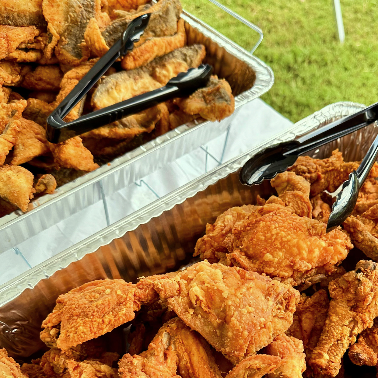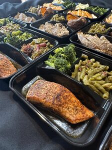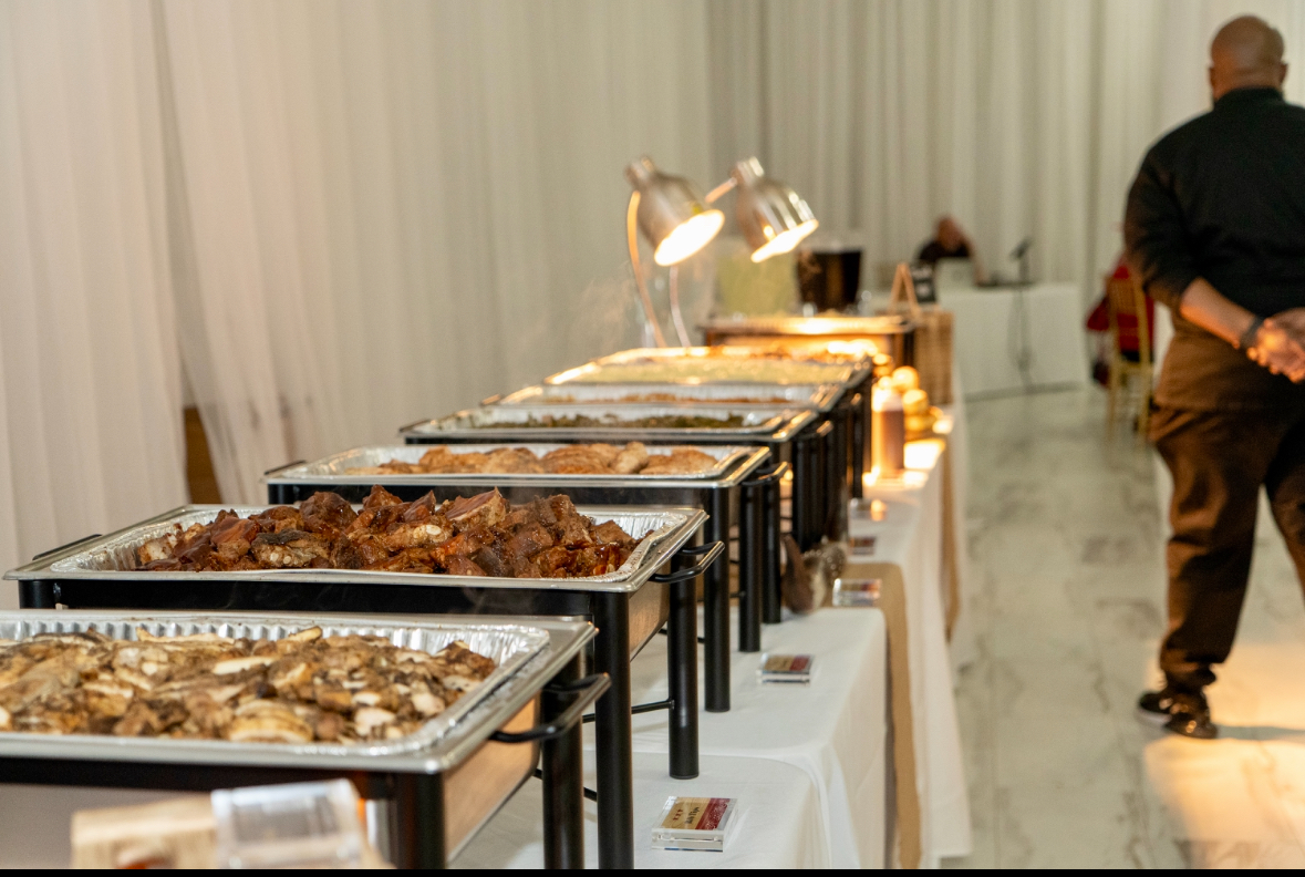 Welcome To Our Table K’s Plates Gallery Fried Fish Fried Chicken Cajun Seafood Pasta Catering Menu Steamed Blue Crabs Buffet Line Pancakes/Salmon Cake Buttered Rolls for BBQ Sliders Pan Seared Salmon w/ Garlic Butter Buffet Line Appetizer Display Steak and Chicken Hibachi Grilled Chicken Garlic Knots Seafood Boil w. Lobster Salmon over Shrimp Alfredo Veggie Skewers Vegan Pasta Primavera Shrimp Fried Cauliflower Rice Chicken wings Pan Seared Salmon over seasoned rice Side Salads Fried Chicken and Fish Meal Prep Options Appetizer Display Personal Crab Boil Shrimp Fajitas Crafting Culinary Moments Allow us to elevate your event “Our goal is to create an experience aligned to your budget just for you ” – Chef K